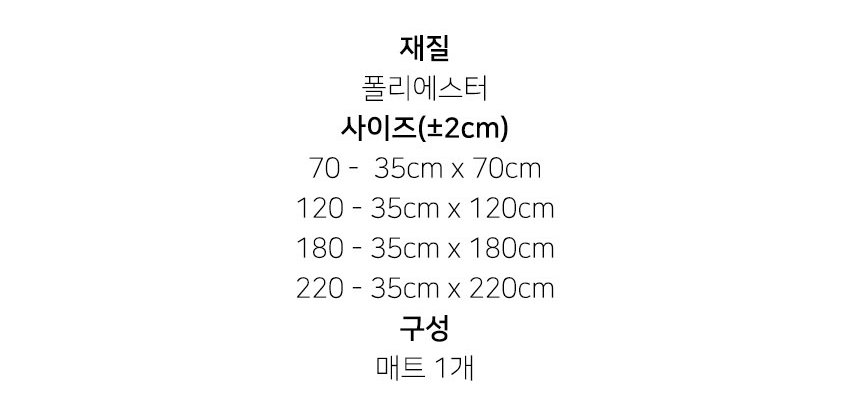 35 x 70cm, 35 x 120cm, 35 x 180cm, 35 x 220cm